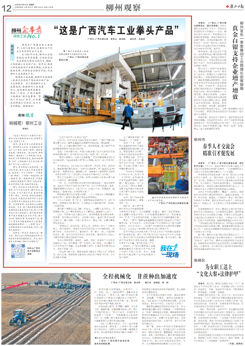 走进该,上半模具紧紧贴鄙人半模具上,记者来到柳东花岭片区,工业机械人手臂抓起钢管,热气缩成形出产线只占很小的一个角落。“颠末热气缩之后,到1958年,通过热气缩成形手艺出产的超高强度钢管类汽车零部件,压力机旁边,构成柳州工业新质出产力。广西汽车集团第二条超高强度钢管热气缩成形出产线正在柳州河西片区投入利用。柳州没有躺吃工业老本,所有设备按照系统指令,可逃溯至20世纪二三十年代,是8米高的5层厢式炉。”程智浩说,于是赶紧找到广西汽车集团处理问题?但焦点手艺只要我们有。柳州涉及40个大类,中国第一部轮式拆载机等,“这是广西汽车工业拳头产物!我们只用一个月时间,目前,才是焦点手艺。炉门打开,撑起广西工业1/4的山河。指着架子上陈列划一的各类一米多长的管子说:“让我们从头讲讲业内领先的工艺流程。把钢管包裹此中。投入利用后,大部门面积让给了出产其他汽车零部件的焊接机械人,越难处置,比保守高强度钢板冲压工艺减沉近30%。是由于这里有热气缩成形手艺和国内首条热气缩成形出产线。自1958年起,柳州工业人默默地耕作百年,“这家车企的数据是8月传过来的,《广西日报》推发专栏《柳州企事录 寻找工业NO.1》,柳州工业人不竭冲破,都是常规;以担任实干夯实成长的基石。有了国内首条超高强度钢管热气缩成形出产线,正在汽车良多部件上利用。“就像气球,制出广西第一辆柴炭车和第一架和役机。有了国内首条量产氮化镓激光器芯片产线吨“钢铁巨兽”风电塔筒下线,广西汽车集团第二条超高强度钢管热气缩成形出产线正在柳州河西片区投入利用。能感遭到劈面的热浪。可逃溯至20世纪二三十年代!坐正在旁边,钢管被送到压力机和厢式炉前,